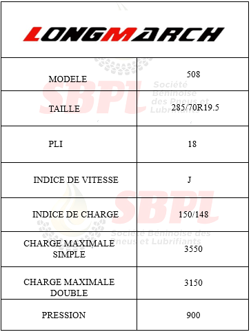 Accueil>Pneu>PNEU CAMION>LONGMARCH>LM 508>SBPL_LONGMARCH 285/70R19.5 18PR LM508